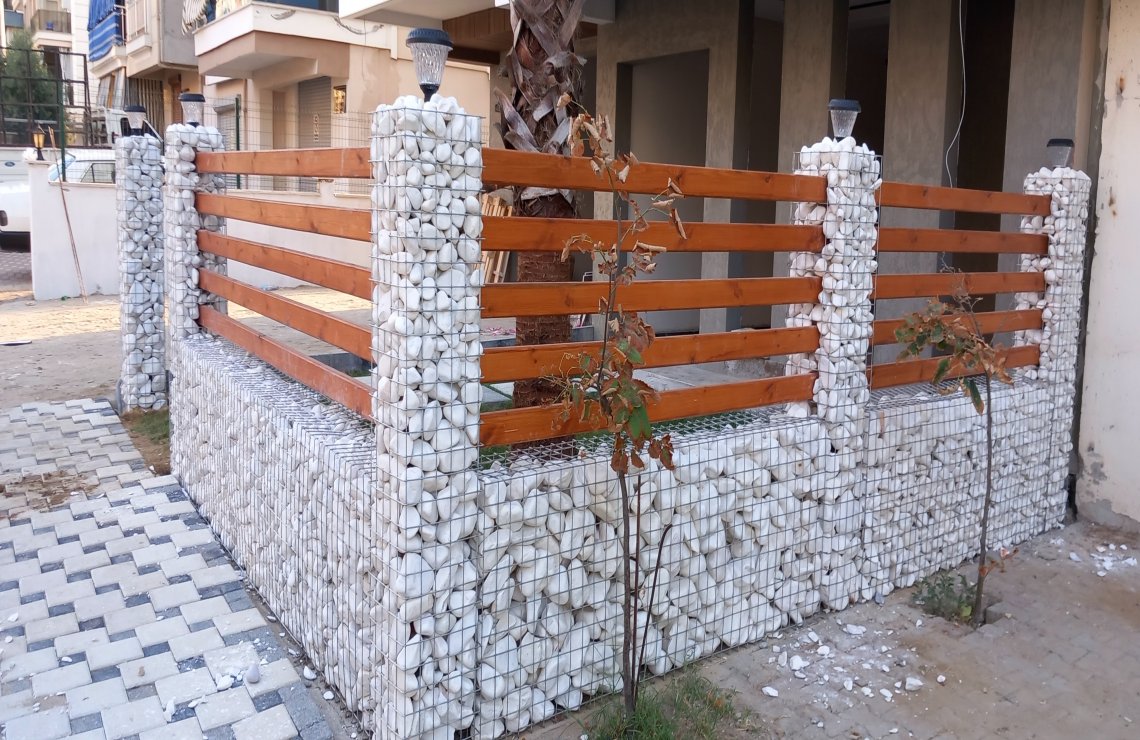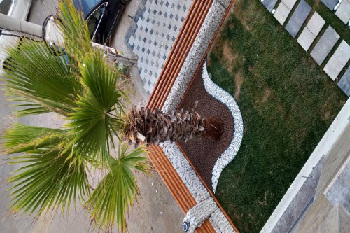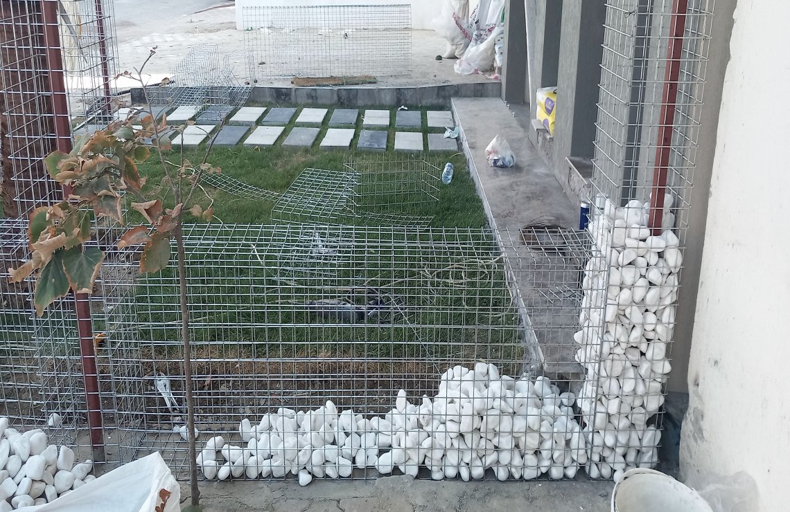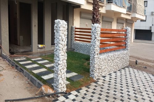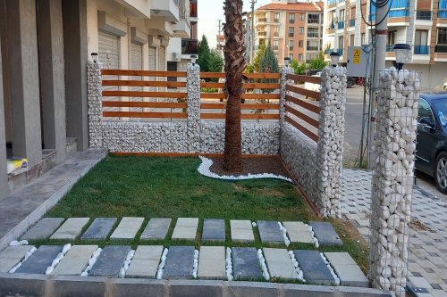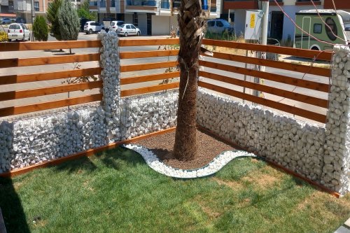 Manisa Salihli'de E. ERKUL'a ait binanın bahçe düzenlemesi, Gabion Duvar yapımı, Panel Çit montajı, Yürüme yolu tanzimi, Çim serimi, Palmiye ve meyve ağaçlarının dikim işine ait çalışmalarımız.
