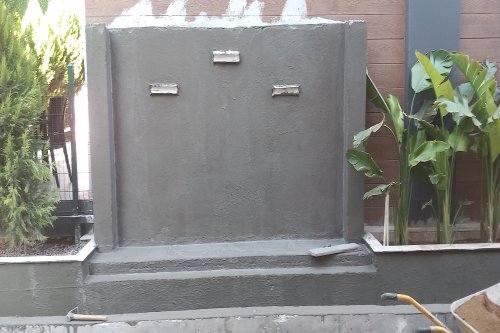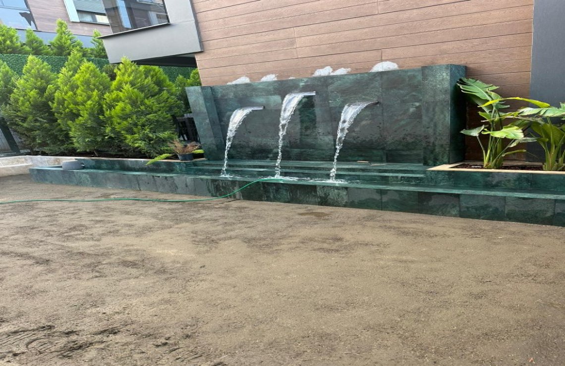 U. İMAMOĞLU'na ait villa bahçesinde Alt yapı sistemleri, Yürüme yolu, Veranda, süs havuzu, Şelale, Beton saksı, Oto park, Sulama sistemleri yapımı, çim serilmesi, muhtelif cins ve miktarlarda ağaç ve çiçeklerin dikilmesine ait çalışmalarımız.